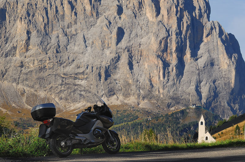 We leave towards Bolzano through a few Dolomites passes, as Passo di Gardena (2137 m), Passo di Sella (2244 m). After Bolzano you pass the Passo Della Mendola, whose asphalt is in great condition, with views on the Dolomites behind you. The descent takes you through vast fields of apple trees.